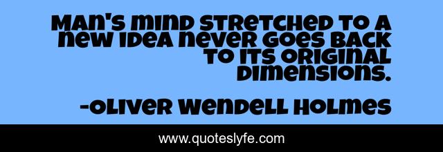 This page presents the quote "Man's mind stretched to a new idea never goes back to its original dimensions.". Author of this quote is Oliver Wendell Holmes. .