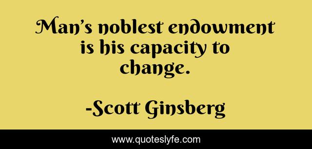 This page presents the quote "Man’s noblest endowment is his capacity to change.". Author of this quote is Scott Ginsberg. This quote is about change-your-life, change,.