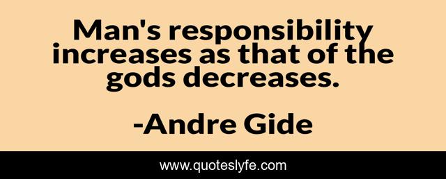 This page presents the quote "Man's responsibility increases as that of the gods decreases.". Author of this quote is Andre Gide. .