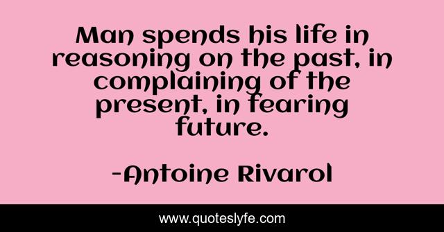 This page presents the quote "Man spends his life in reasoning on the past, in complaining of the present, in fearing future.". Author of this quote is Antoine Rivarol. This quote is about past, life, man,.