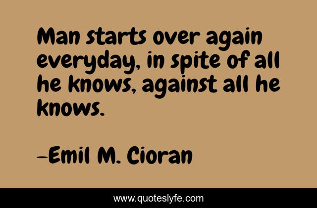 "Emil M. Cioran Quotes." Quoteslyfe.com, 2025. Fri. 05 Dec. 2025. <https://www.quoteslyfe.com/quote/Man-starts-over-again-everyday-in-spite-2696>.