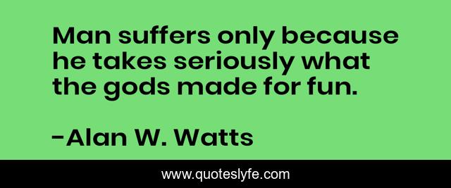 This page presents the quote "Man suffers only because he takes seriously what the gods made for fun.". Author of this quote is Alan W. Watts. This quote is about tao, philosophy, zen, theology, religion, buddhism, taoism, metaphysics,.