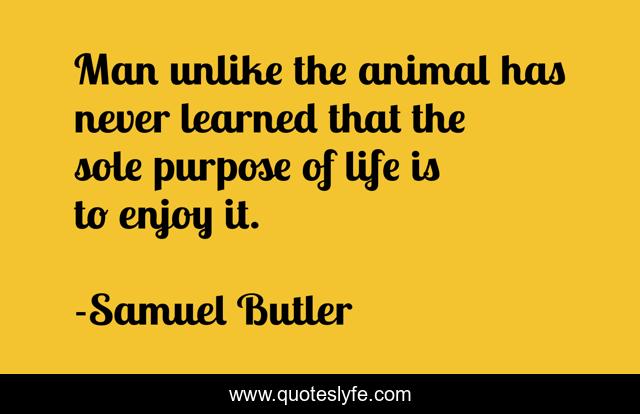 This page presents the quote "Man unlike the animal has never learned that the sole purpose of life is to enjoy it.". Author of this quote is Samuel Butler. .