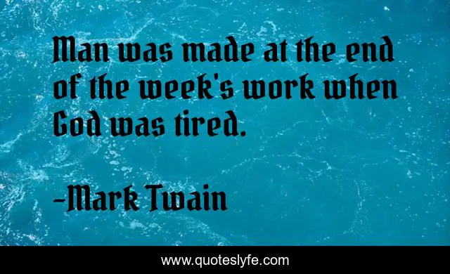 "Mark Twain Quotes." Quoteslyfe.com, 2025. Fri. 05 Dec. 2025. <https://www.quoteslyfe.com/quote/Man-was-made-at-the-end-of-6915>.