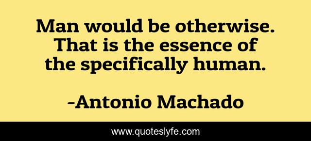 This page presents the quote "Man would be otherwise. That is the essence of the specifically human.". Author of this quote is Antonio Machado. .