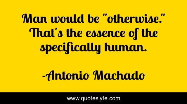 This page presents the quote "Man would be "otherwise." That's the essence of the specifically human.". Author of this quote is Antonio Machado. .