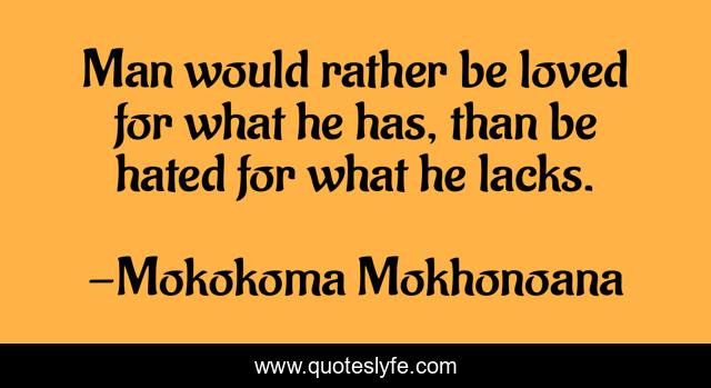 "Mokokoma Mokhonoana Quotes." Quoteslyfe.com, 2025. Fri. 05 Dec. 2025. <https://www.quoteslyfe.com/quote/Man-would-rather-be-loved-for-what-236629>.