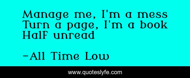 This page presents the quote "Manage me, I'm a mess Turn a page, I'm a book Half unread". Author of this quote is All Time Low. This quote is about all-time-low, lyrics,.
