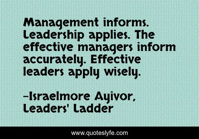 "Israelmore Ayivor, Leaders' Ladder Quotes." Quoteslyfe.com, 2025. Sat. 06 Dec. 2025. <https://www.quoteslyfe.com/quote/Management-informs-Leadership-applies-The-effective-managers-64867>.