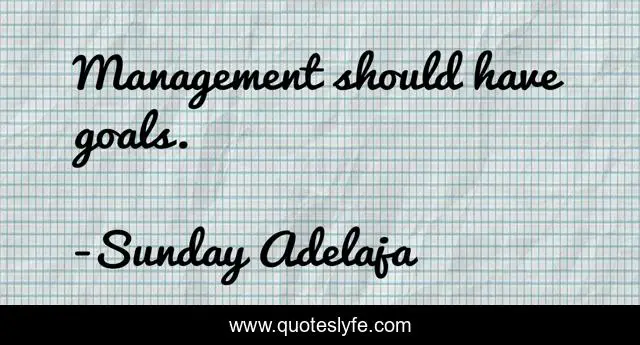 This page presents the quote "Management should have goals.". Author of this quote is Sunday Adelaja. .