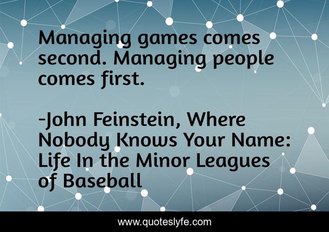 "John Feinstein, Where Nobody Knows Your Name: Life In the Minor Leagues of Baseball Quotes." Quoteslyfe.com, 2025. Sat. 06 Dec. 2025. <https://www.quoteslyfe.com/quote/Managing-games-comes-second-Managing-people-comes-206181>.