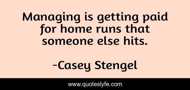 This page presents the quote "Managing is getting paid for home runs that someone else hits.". Author of this quote is Casey Stengel. This quote is about hits, someone, paid,.