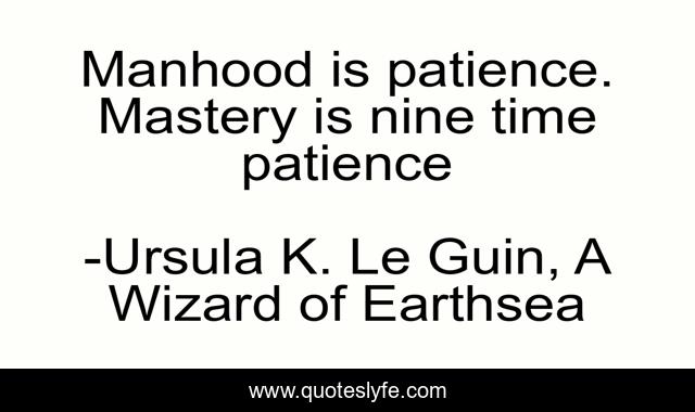 This page presents the quote "Manhood is patience. Mastery is nine time patience". Author of this quote is Ursula K. Le Guin, A Wizard of Earthsea. This quote is about mastery, manhood, patience,.