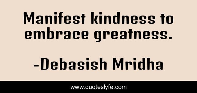 "Debasish Mridha Quotes." Quoteslyfe.com, 2025. Sat. 06 Dec. 2025. <https://www.quoteslyfe.com/quote/Manifest-kindness-to-embrace-greatness-136583>.