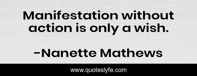 "Nanette Mathews Quotes." Quoteslyfe.com, 2025. Fri. 05 Dec. 2025. <https://www.quoteslyfe.com/quote/Manifestation-without-action-is-only-a-wish-157728>.