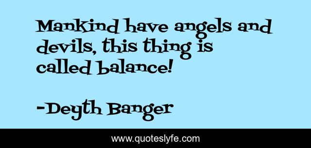 This page presents the quote "Mankind have angels and devils, this thing is called balance!". Author of this quote is Deyth Banger. This quote is about and, devils, mankind, have, balance, angels,.