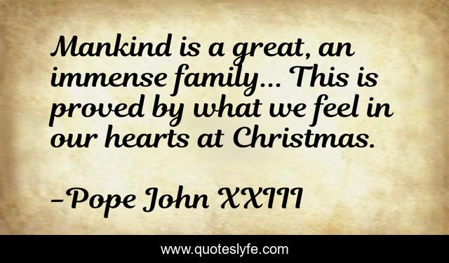 This page presents the quote "Mankind is a great, an immense family... This is proved by what we feel in our hearts at Christmas.". Author of this quote is Pope John XXIII. .