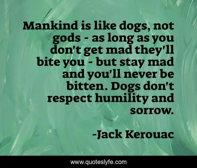 This page presents the quote "Mankind is like dogs, not gods - as long as you don't get mad they'll bite you - but stay mad and you'll never be bitten. Dogs don't respect humility and sorrow.". Author of this quote is Jack Kerouac. This quote is about sorrow, long, humility,.