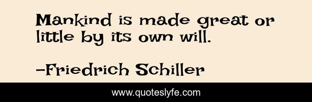 This page presents the quote "Mankind is made great or little by its own will.". Author of this quote is Friedrich Schiller. This quote is about great, little,.
