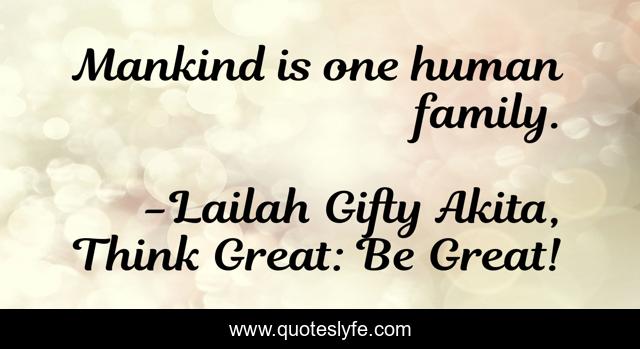 "Lailah Gifty Akita, Think Great: Be Great! Quotes." Quoteslyfe.com, 2025. Sat. 06 Dec. 2025. <https://www.quoteslyfe.com/quote/Mankind-is-one-human-family-73881>.