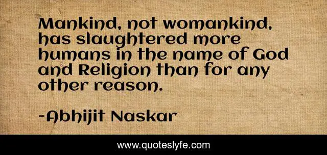 "Abhijit Naskar Quotes." Quoteslyfe.com, 2025. Sun. 07 Dec. 2025. <https://www.quoteslyfe.com/quote/Mankind-not-womankind-has-slaughtered-more-humans-225293>.