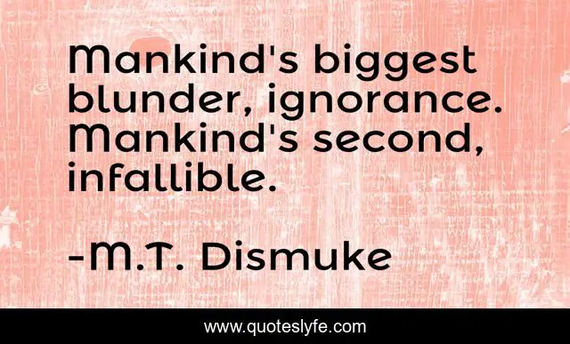 "M.T. Dismuke Quotes." Quoteslyfe.com, 2025. Fri. 05 Dec. 2025. <https://www.quoteslyfe.com/quote/Mankind-s-biggest-blunder-ignorance-Mankind-s-199317>.
