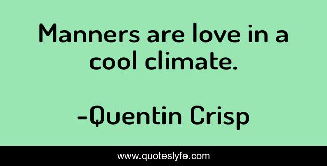 This page presents the quote "Manners are love in a cool climate.". Author of this quote is Quentin Crisp. This quote is about climate, love, manners, affection,.
