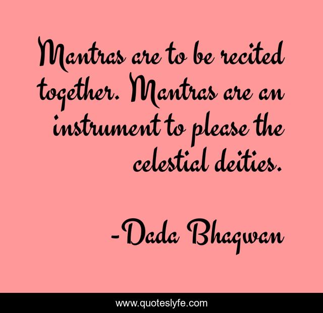 This page presents the quote "Mantras are to be recited together. Mantras are an instrument to please the celestial deities.". Author of this quote is Dada Bhagwan. This quote is about instrument, spiritual, deities,.