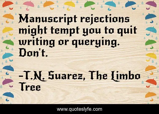 "T.N. Suarez, The Limbo Tree Quotes." Quoteslyfe.com, 2025. Fri. 05 Dec. 2025. <https://www.quoteslyfe.com/quote/Manuscript-rejections-might-tempt-you-to-quit-47531>.