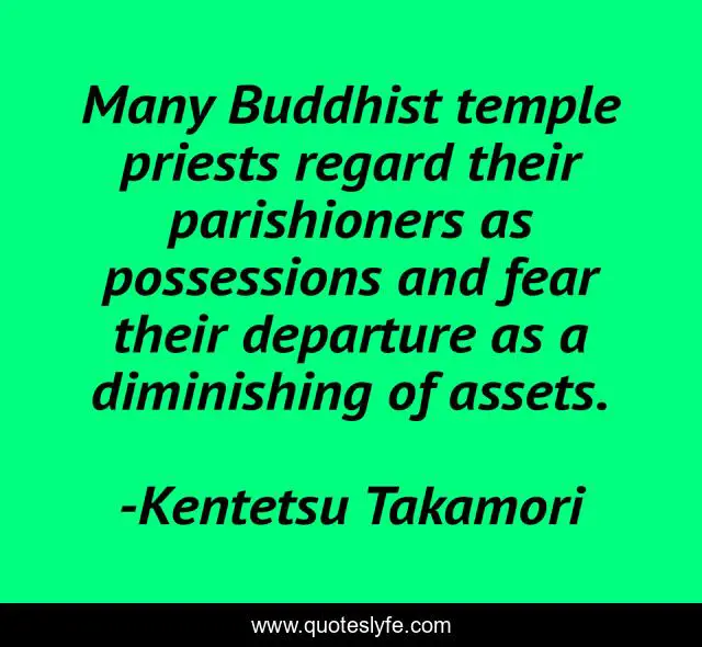 This page presents the quote "Many Buddhist temple priests regard their parishioners as possessions and fear their departure as a diminishing of assets.". Author of this quote is Kentetsu Takamori. This quote is about japan, buddhism, temples, religion,.