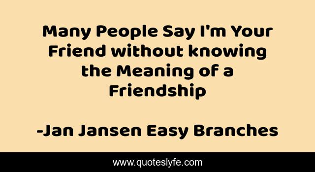 This page presents the quote "Many People Say I'm Your Friend without knowing the Meaning of a Friendship". Author of this quote is Jan Jansen Easy Branches. .