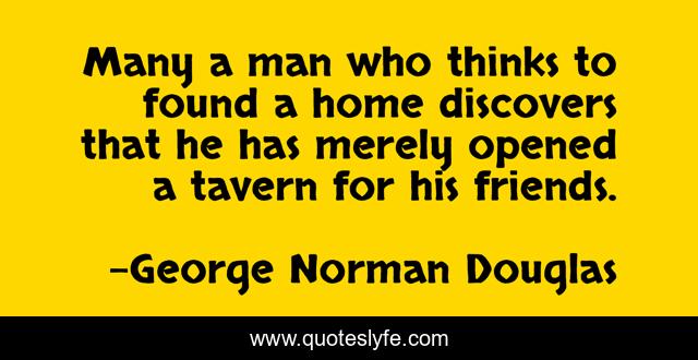 This page presents the quote "Many a man who thinks to found a home discovers that he has merely opened a tavern for his friends.". Author of this quote is George Norman Douglas. .