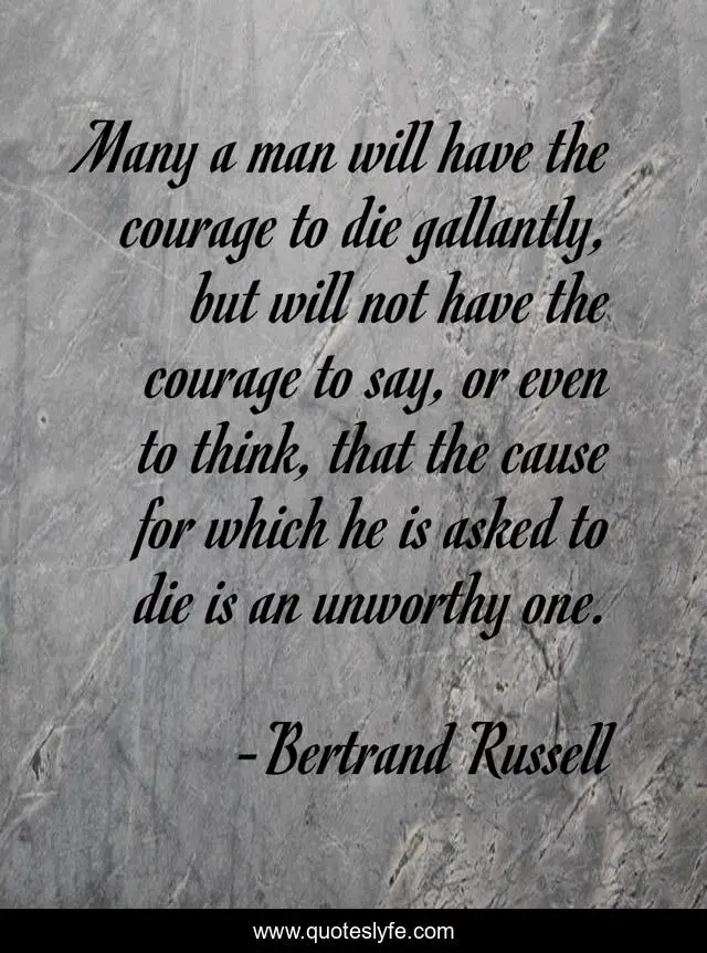 This page presents the quote "Many a man will have the courage to die gallantly, but will not have the courage to say, or even to think, that the cause for which he is asked to die is an unworthy one.". Author of this quote is Bertrand Russell. This quote is about die, think, man,.