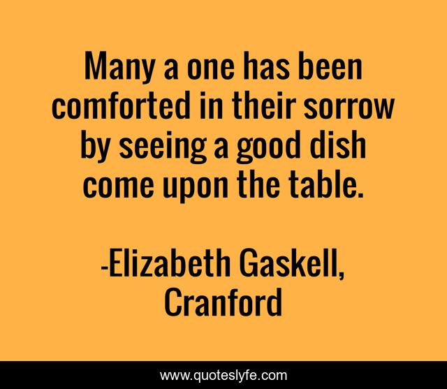 This page presents the quote "Many a one has been comforted in their sorrow by seeing a good dish come upon the table.". Author of this quote is Elizabeth Gaskell, Cranford. This quote is about food, comfort,.