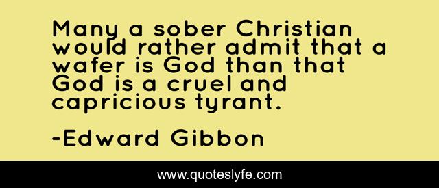 This page presents the quote "Many a sober Christian would rather admit that a wafer is God than that God is a cruel and capricious tyrant.". Author of this quote is Edward Gibbon. This quote is about christians, christianity,.