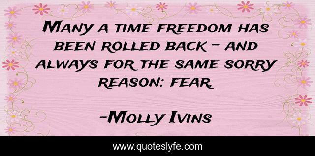 This page presents the quote "Many a time freedom has been rolled back - and always for the same sorry reason: fear.". Author of this quote is Molly Ivins. This quote is about freedom, sorry, time,.