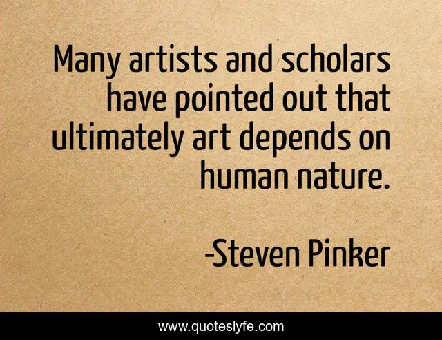 This page presents the quote "Many artists and scholars have pointed out that ultimately art depends on human nature.". Author of this quote is Steven Pinker. This quote is about human-nature, human-nature-wisdom, steven-pinker,.