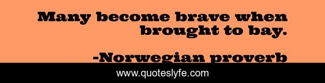 This page presents the quote "Many become brave when brought to bay.". Author of this quote is Norwegian proverb. This quote is about courage, bravery,.
