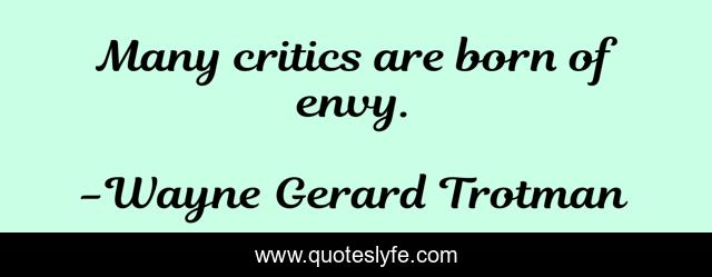 This page presents the quote "Many critics are born of envy.". Author of this quote is Wayne Gerard Trotman. This quote is about critics, envy, envying-successful-people,.