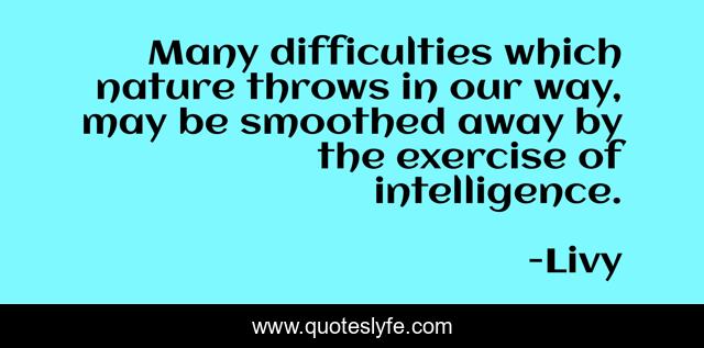 This page presents the quote "Many difficulties which nature throws in our way, may be smoothed away by the exercise of intelligence.". Author of this quote is Livy. This quote is about exercise, nature,.