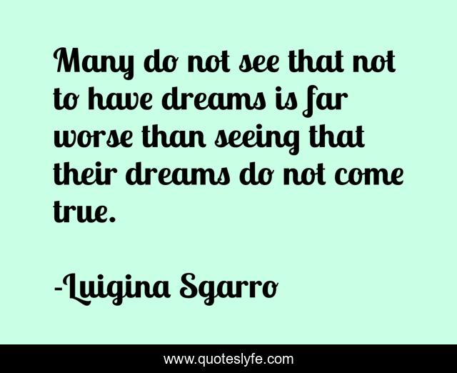 This page presents the quote "Many do not see that not to have dreams is far worse than seeing that their dreams do not come true.". Author of this quote is Luigina Sgarro. This quote is about dreams, dreaming,.