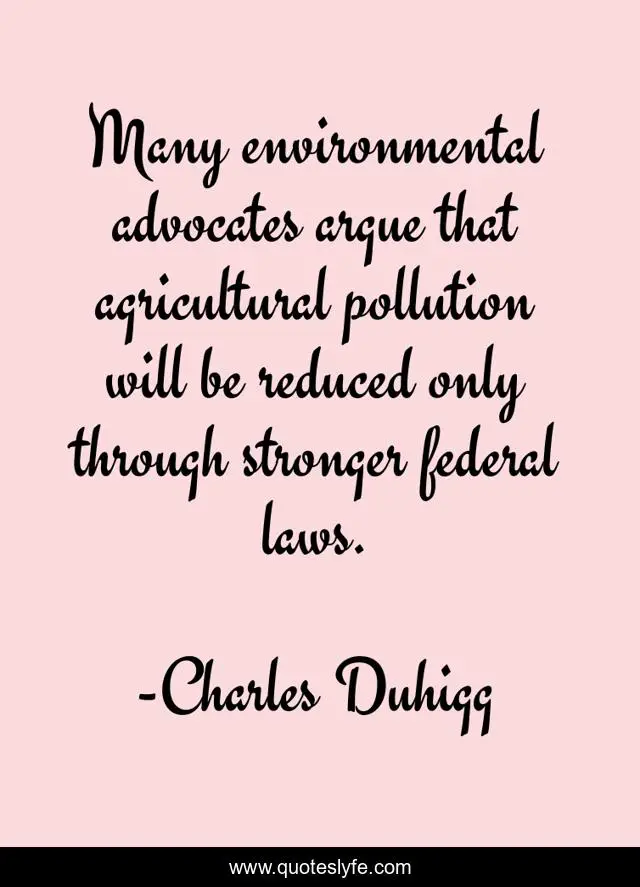 "Charles Duhigg Quotes." Quoteslyfe.com, 2025. Mon. 08 Dec. 2025. <https://www.quoteslyfe.com/quote/Many-environmental-advocates-argue-that-agricultural-pollution-328769>.