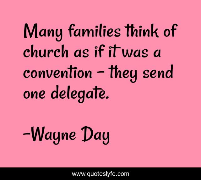 This page presents the quote "Many families think of church as if it was a convention - they send one delegate.". Author of this quote is Wayne Day. .