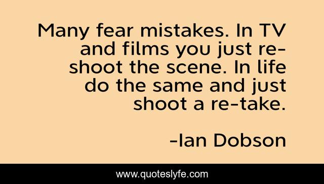 This page presents the quote "Many fear mistakes. In TV and films you just re-shoot the scene. In life do the same and just shoot a re-take.". Author of this quote is Ian Dobson. .