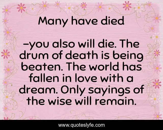 "you also will die. The drum of death is being beaten. The world has fallen in love with a dream. Only sayings of the wise will remain. Quotes." Quoteslyfe.com, 2025. Sat. 06 Dec. 2025. <https://www.quoteslyfe.com/quote/Many-have-died-12373>.
