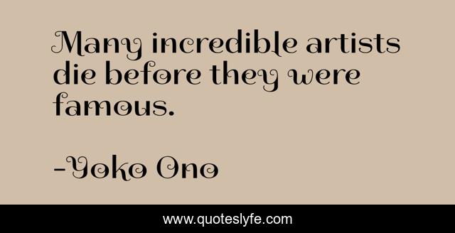 This page presents the quote "Many incredible artists die before they were famous.". Author of this quote is Yoko Ono. This quote is about die, artists, incredible,.