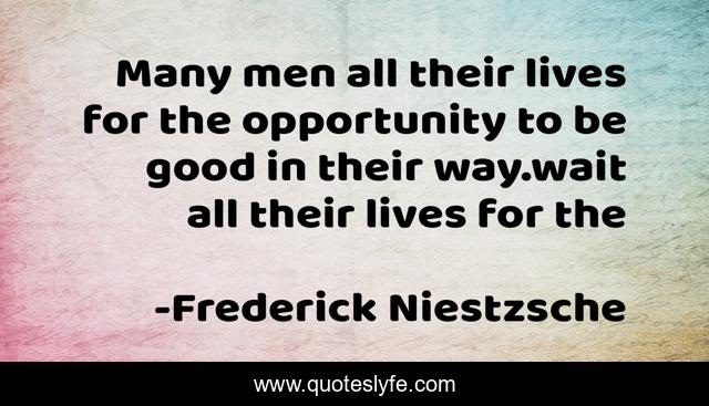 This page presents the quote "Many men all their lives for the opportunity to be good in their way.wait all their lives for the". Author of this quote is Frederick Niestzsche. .