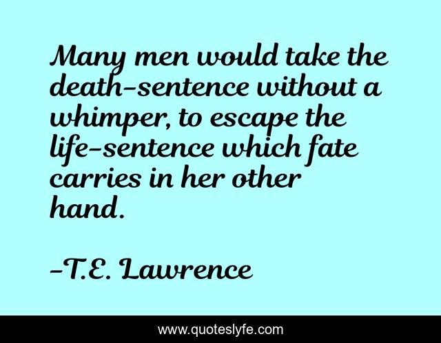 This page presents the quote "Many men would take the death-sentence without a whimper, to escape the life-sentence which fate carries in her other hand.". Author of this quote is T.E. Lawrence. This quote is about life-sentence, death-sentence, fate,.