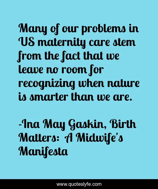"Ina May Gaskin, Birth Matters: A Midwife's Manifesta Quotes." Quoteslyfe.com, 2025. Fri. 05 Dec. 2025. <https://www.quoteslyfe.com/quote/Many-of-our-problems-in-US-maternity-72452>.