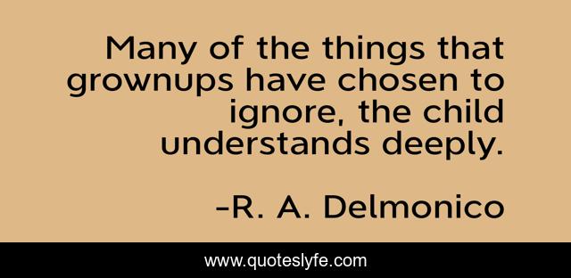 This page presents the quote "Many of the things that grownups have chosen to ignore, the child understands deeply.". Author of this quote is R. A. Delmonico. .